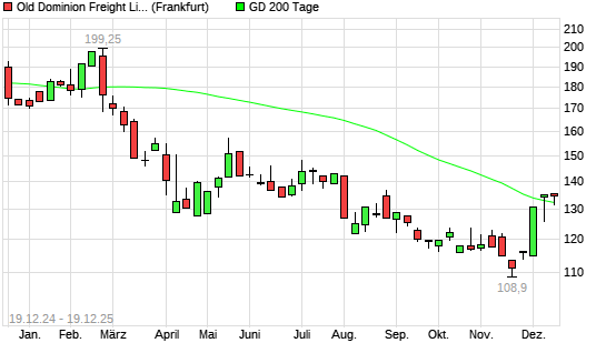 Mit dem Anstieg auf 134,10 EUR hat die Old Dominion Freight Line-Aktie am 19.12.2025 die 200-Tage-Linie nach oben gekreuzt.Die Old Dominion Freight Line-Aktie befand sich seit dem 18.12.2025 ...weiterlesen