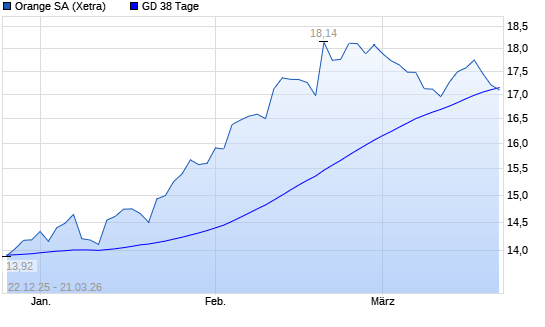 Mit dem Rücksetzer auf 17,04 EUR hat die Orange-Aktie am 20.03.2026 die 38-Tage-Linie nach unten gekreuzt.Die Orange-Aktie befindet sich seit dem 15.01.2025 im ...weiterlesen