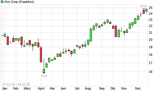 Mit dem Anstieg auf 24,80 EUR hat die Orix-Aktie (ISIN JP3200450009) am 23.12.2025 ein neues 10-Jahres-Hoch erreicht und damit den Kurs vom 16.12.2025 eingestellt.Die Orix-Aktie befindet sich ...weiterlesen