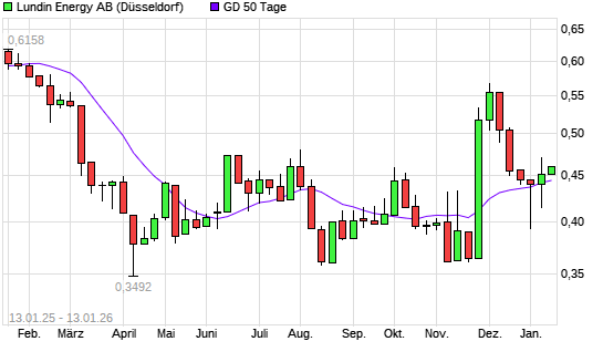Mit dem Rücksetzer auf 0,43 EUR hat die Orron Energy-Aktie am 12.01.2026 die 50-Tage-Linie nach unten gekreuzt.Die Orron Energy-Aktie befindet sich seit dem 08.01.2026 im langfristigen ...weiterlesen