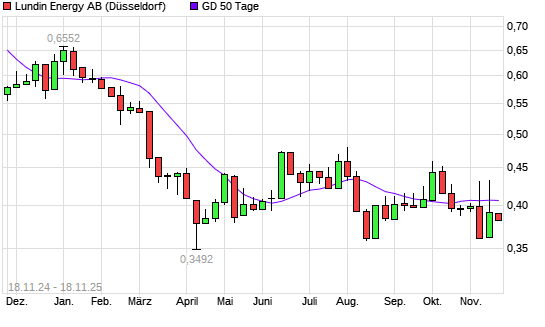 Mit dem Rücksetzer auf 0,38 EUR hat die Orron Energy-Aktie am 17.11.2025 die 50-Tage-Linie nach unten gekreuzt.Die Orron Energy-Aktie befindet sich seit dem 14.11.2025 im langfristigen ...weiterlesen