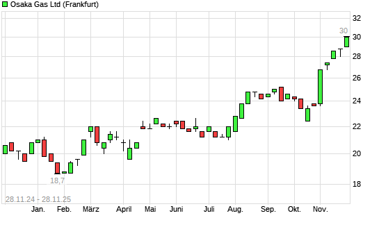 Mit dem Anstieg auf 30,00 EUR hat die Osaka Gas-Aktie (ISIN JP3180400008) am 27.11.2025 ein neues All-Time-High erreicht und damit den Kurs vom 26.11.2025 eingestellt.Die Osaka Gas-Aktie befindet ...weiterlesen