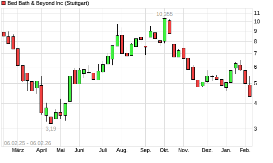 Mit dem Rücksetzer auf 4,20 EUR hat die Overstock.com-Aktie (ISIN US6903701018) am 05.02.2026 ein neues 6-Monats-Tief erreicht und damit den Kurs vom 29.12.2025 eingestellt.Die Overstock.com-Aktie ...weiterlesen