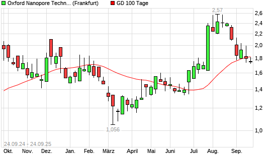 Mit dem Rücksetzer auf 1,79 EUR hat die Oxford Nanopore Technologies-Aktie am 23.09.2025 die 100-Tage-Linie nach unten gekreuzt.Die Oxford Nanopore Technologies-Aktie befindet sich seit ...weiterlesen