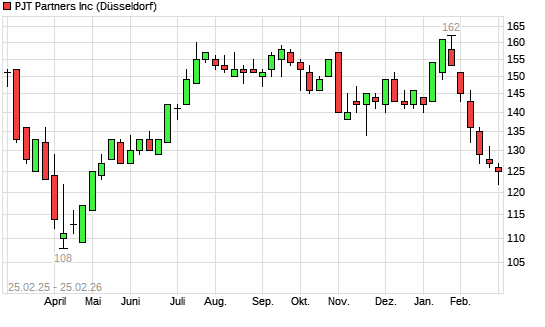 Mit dem Rücksetzer auf 124,00 EUR hat die PJT Partners-Aktie (ISIN US69343T1079) am 24.02.2026 ein neues 6-Monats-Tief erreicht und damit den Kurs vom 23.02.2026 eingestellt.Die ...weiterlesen