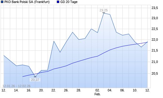 Mit dem Rücksetzer auf 21,66 EUR hat die PKO Bank Polski-Aktie am 11.02.2026 die 20-Tage-Linie nach unten gekreuzt.Die PKO Bank Polski-Aktie befindet sich seit dem 24.11.2025 im langfristigen ...weiterlesen