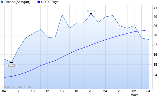Mit dem Rücksetzer auf 37,70 EUR hat die PORR-Aktie am 03.03.2026 die 20-Tage-Linie nach unten gekreuzt.Die PORR-Aktie befindet sich seit dem 24.11.2025 im langfristigen ...weiterlesen