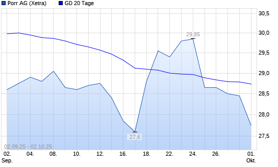 Mit dem Rücksetzer auf 28,20 EUR hat die PORR-Aktie am 01.10.2025 die 20-Tage-Linie nach unten gekreuzt.Die PORR-Aktie befindet sich seit dem 08.10.2024 im langfristigen Aufwärtstrend und ...weiterlesen