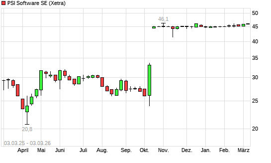 Mit dem Anstieg auf 45,70 EUR hat die PSI Software-Aktie (ISIN DE000A0Z1JH9) am 02.03.2026 ein neues 3-Jahres-Hoch erreicht und damit den Kurs vom 25.02.2026 eingestellt.Die ...weiterlesen