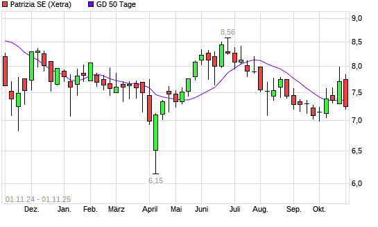 Mit dem Rücksetzer auf 7,22 EUR hat die Patrizia SE-Aktie am 31.10.2025 die 50-Tage-Linie nach unten gekreuzt.Die Patrizia SE-Aktie befindet sich seit dem 28.10.2025 im langfristigen Abwärtstrend ...weiterlesen