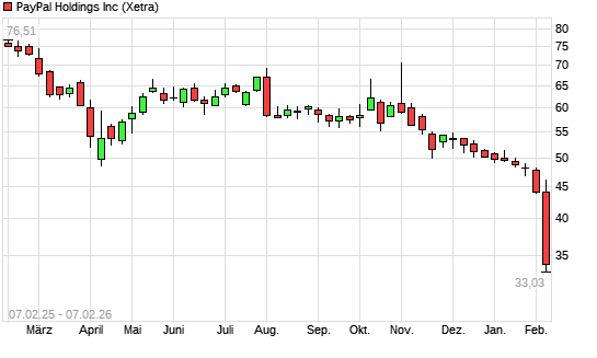Mit dem Rücksetzer auf 33,90 EUR hat die PayPal-Aktie (ISIN US70450Y1038) am 06.02.2026 ein neues 5-Jahres-Tief erreicht und damit den Kurs vom 05.02.2026 eingestellt.Die PayPal-Aktie befindet ...weiterlesen