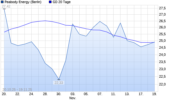 Mit dem Rücksetzer auf 24,62 EUR hat die Peabody Energy-Aktie am 18.11.2025 die 20-Tage-Linie nach unten gekreuzt.Die Peabody Energy-Aktie befindet sich seit dem 04.09.2025 im langfristigen ...weiterlesen
