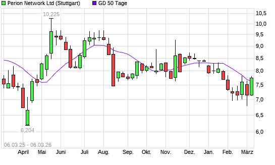 Mit dem Anstieg auf 7,69 EUR hat die Perion Network-Aktie am 05.03.2026 die 50-Tage-Linie nach oben gekreuzt.Die Perion Network-Aktie befindet sich seit dem 23.12.2025 im ...weiterlesen