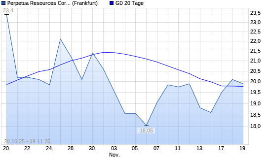 Mit dem Anstieg auf 20,80 EUR hat die Perpetua Resources-Aktie am 19.11.2025 die 38-Tage-Linie nach oben gekreuzt.Die Perpetua Resources-Aktie befindet sich seit dem 04.07.2025 im langfristigen ...weiterlesen