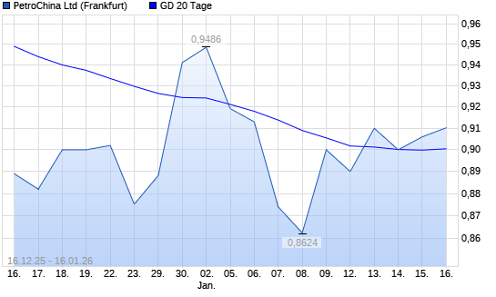 Mit dem Anstieg auf 0,91 EUR hat die PetroChina-Aktie am 15.01.2026 die 20-Tage-Linie nach oben gekreuzt.Die PetroChina-Aktie befindet sich seit dem 22.05.2025 im langfristigen Aufwärtstrend ...weiterlesen