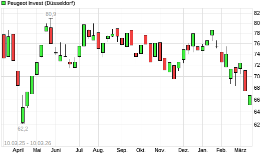 Mit dem Rücksetzer auf 66,00 EUR hat die Peugeot Invest-Aktie (ISIN FR0000064784) am 09.03.2026 ein neues 6-Monats-Tief erreicht und damit den Kurs vom 06.03.2026 ...weiterlesen