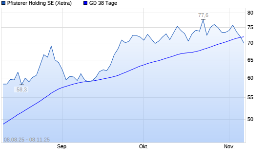 Mit dem Rücksetzer auf 69,90 EUR hat die Pfisterer Holding SE-Aktie am 07.11.2025 die 38-Tage-Linie nach unten gekreuzt.Der Abstand zur 200-Tage-Linie beträgt aktuell +0,00%. ...weiterlesen
