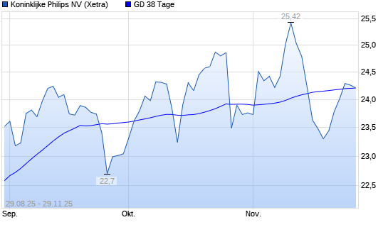 Mit dem Rücksetzer auf 24,18 EUR hat die Philips Electronics-Aktie am 28.11.2025 die 38-Tage-Linie nach unten gekreuzt.Die Philips Electronics-Aktie befindet sich seit dem 26.09.2025 im ...weiterlesen