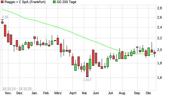 Mit dem Anstieg auf 1,94 EUR hat die Piaggio-Aktie am 17.10.2025 die 200-Tage-Linie nach oben gekreuzt.Die Piaggio-Aktie befand sich seit dem 14.10.2025 im langfristigen Abwärtstrend und hat ...weiterlesen