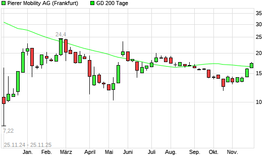 Mit dem Anstieg auf 17,16 EUR hat die Pierer Mobility-Aktie am 24.11.2025 die 200-Tage-Linie nach oben gekreuzt.Die Pierer Mobility-Aktie befand sich seit dem 03.09.2025 im langfristigen Abwärtstrend ...weiterlesen