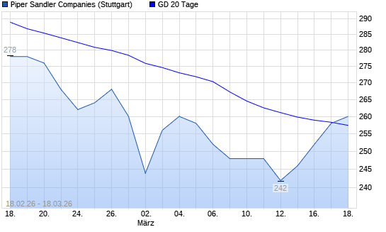 Mit dem Anstieg auf 258,00 EUR hat die Piper Sandler-Aktie am 17.03.2026 die 20-Tage-Linie nach oben gekreuzt.Die Piper Sandler-Aktie befindet sich seit dem 13.02.2026 im ...weiterlesen