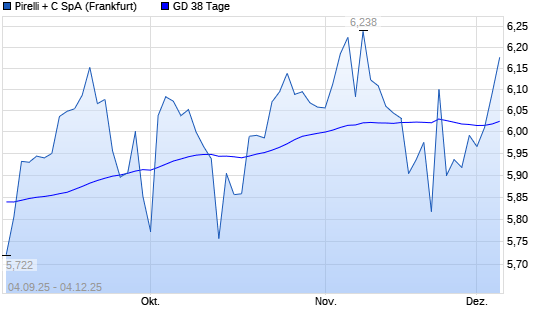 Mit dem Anstieg auf 6,09 EUR hat die Pirelli-Aktie am 03.12.2025 die 38-Tage-Linie nach oben gekreuzt.Die Pirelli-Aktie befindet sich seit dem 24.11.2025 im langfristigen Aufwärtstrend und hat ...weiterlesen