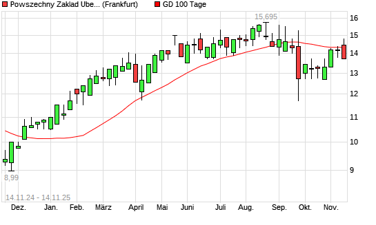 Mit dem Rücksetzer auf 14,31 EUR hat die Powszechny Zaklad Ubezpieczen-Aktie am 13.11.2025 die 100-Tage-Linie nach unten gekreuzt.Die Powszechny Zaklad Ubezpieczen-Aktie befindet sich seit ...weiterlesen
