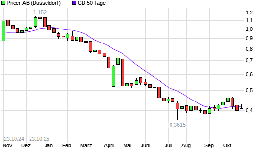Mit dem Anstieg auf 0,41 EUR hat die Pricer-Aktie am 22.10.2025 die 50-Tage-Linie nach oben gekreuzt.Die Pricer-Aktie befindet sich seit dem 08.01.2025 im langfristigen Abwärtstrend und hat ...weiterlesen