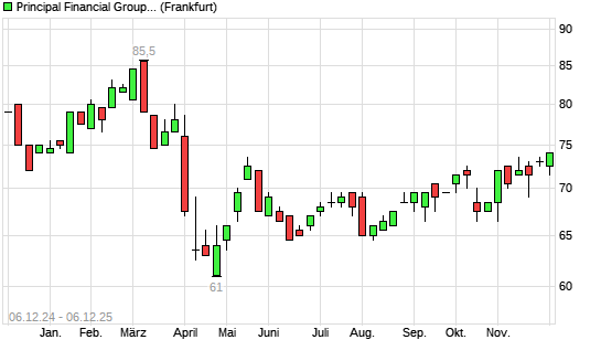 Mit dem Anstieg auf 74,00 EUR hat die Principal Financial-Aktie (ISIN US74251V1026) am 05.12.2025 ein neues 6-Monats-Hoch erreicht und damit den Kurs vom 13.11.2025 eingestellt.Die Principal ...weiterlesen