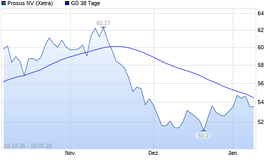 Mit dem Rücksetzer auf 53,42 EUR hat die Prosus-Aktie am 09.01.2026 die 38-Tage-Linie nach unten gekreuzt.Die Prosus-Aktie befindet sich seit dem 17.04.2025 im langfristigen Aufwärtstrend ...weiterlesen