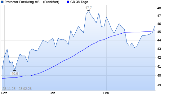 Mit dem Anstieg auf 45,75 EUR hat die Protector Forsikring-Aktie am 27.02.2026 die 38-Tage-Linie nach oben gekreuzt.Der Abstand zur 200-Tage-Linie beträgt aktuell +11,15%. ...weiterlesen