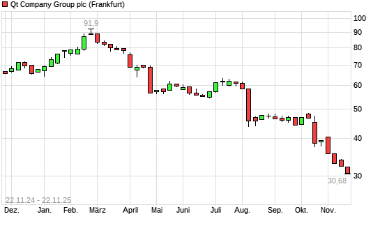 Mit dem Rücksetzer auf 30,68 EUR hat die Qt Group Ord Shs-Aktie (ISIN FI4000198031) am 21.11.2025 ein neues 5-Jahres-Tief erreicht und damit den Kurs vom 18.11.2025 eingestellt.Die Qt Group ...weiterlesen