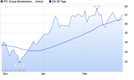 Mit dem Anstieg auf 36,80 EUR hat die RTL-Aktie am 26.02.2026 die 38-Tage-Linie nach oben gekreuzt.Die RTL-Aktie befindet sich seit dem 29.12.2025 im langfristigen Aufwärtstrend und hat ...weiterlesen