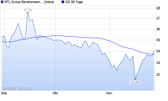Mit dem Anstieg auf 34,00 EUR hat die RTL-Aktie am 28.11.2025 die 38-Tage-Linie nach oben gekreuzt.Die RTL-Aktie befindet sich seit dem 29.10.2025 im langfristigen Aufwärtstrend und hat in diesem ...weiterlesen