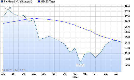 Mit dem Anstieg auf 34,72 EUR hat die Randstad-Aktie am 13.11.2025 die 20-Tage-Linie nach oben gekreuzt.Die Randstad-Aktie befindet sich seit dem 03.09.2025 im langfristigen Abwärtstrend und ...weiterlesen