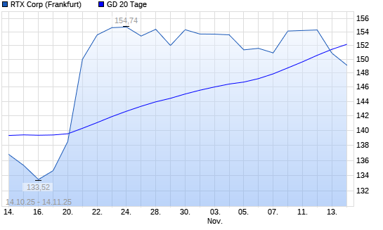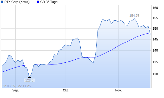 Mit dem Rücksetzer auf 147,54 EUR hat die Raytheon Technologies-Aktie am 21.11.2025 die 38-Tage-Linie nach unten gekreuzt.Die Raytheon Technologies-Aktie befindet sich seit dem 12.05.2025 ...weiterlesen