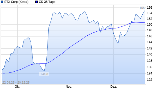 Mit dem Anstieg auf 155,96 EUR hat die Raytheon Technologies-Aktie am 19.12.2025 die 38-Tage-Linie nach oben gekreuzt.Die Raytheon Technologies-Aktie befindet sich seit dem 12.05.2025 im langfristigen ...weiterlesen