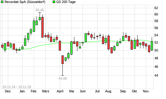 Mit dem Anstieg auf 52,70 EUR hat die Recordati-Aktie am 14.11.2025 die 200-Tage-Linie nach oben gekreuzt.Die Recordati-Aktie befand sich seit dem 13.11.2025 im langfristigen Abwärtstrend und ...weiterlesen