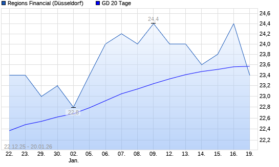 Mit dem Rücksetzer auf 23,60 EUR hat die Regions Financial-Aktie am 19.01.2026 die 20-Tage-Linie nach unten gekreuzt.Die Regions Financial-Aktie befindet sich seit dem 19.11.2025 im langfristigen ...weiterlesen