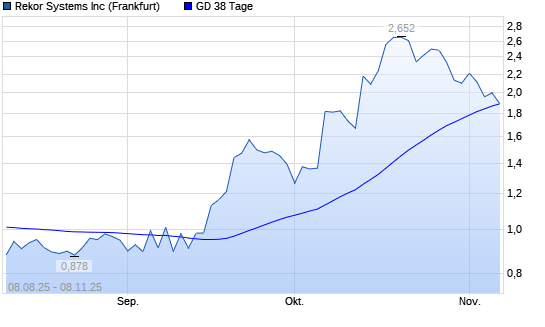 Mit dem Rücksetzer auf 1,89 EUR hat die Rekor Systems-Aktie am 07.11.2025 die 38-Tage-Linie nach unten gekreuzt.Die Rekor Systems-Aktie befindet sich seit dem 16.09.2025 im langfristigen ...weiterlesen