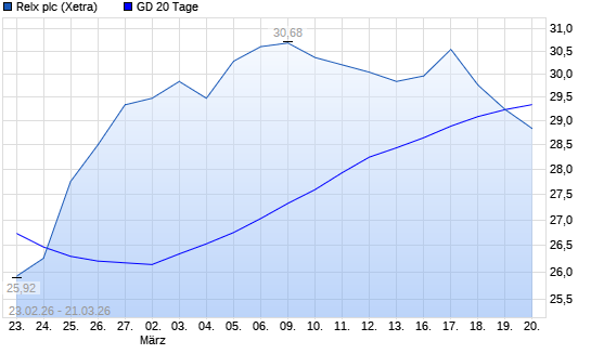 Mit dem Rücksetzer auf 28,50 EUR hat die Relx-Aktie am 20.03.2026 die 20-Tage-Linie nach unten gekreuzt.Die Relx-Aktie befindet sich seit dem 21.07.2025 im langfristigen ...weiterlesen