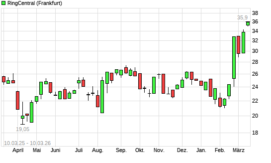 Mit dem Anstieg auf 35,90 EUR hat die RingCentral-Aktie (ISIN US76680R2067) am 09.03.2026 ein neues 12-Monats-Hoch erreicht und damit den Kurs vom 06.03.2026 ...weiterlesen