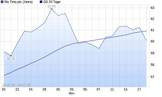 Mit dem Rücksetzer auf 60,02 EUR hat die Rio Tinto plc-Aktie am 18.11.2025 die 20-Tage-Linie nach unten gekreuzt.Die Rio Tinto plc-Aktie befindet sich seit dem 25.09.2025 im langfristigen ...weiterlesen