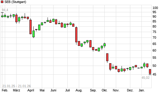 Mit dem Rücksetzer auf 45,20 EUR hat die SEB-Aktie (ISIN FR0000121709) am 20.01.2026 ein neues 10-Jahres-Tief erreicht und damit den Kurs vom 20.11.2025 eingestellt.Die SEB-Aktie befindet ...weiterlesen