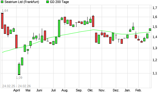 Mit dem Anstieg auf 1,46 EUR hat die SEMBCORP MARINE-Aktie am 23.02.2026 die 200-Tage-Linie nach oben gekreuzt.Die SEMBCORP MARINE-Aktie befand sich seit dem 20.01.2026 im ...weiterlesen
