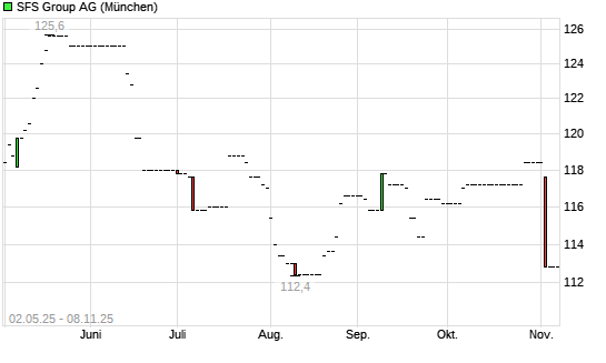 Mit dem Rücksetzer auf 110,20 EUR hat die SFS Group-Aktie (ISIN CH0239229302) am 07.11.2025 ein neues 6-Monats-Tief erreicht und damit den Kurs vom 07.08.2025 eingestellt.Die SFS Group-Aktie ...weiterlesen