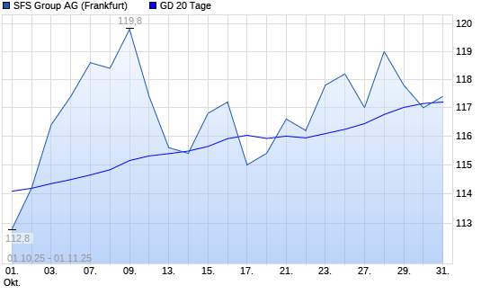 Mit dem Anstieg auf 117,40 EUR hat die SFS Group-Aktie am 31.10.2025 die 20-Tage-Linie nach oben gekreuzt.Die SFS Group-Aktie befindet sich seit dem 30.10.2025 im langfristigen Abwärtstrend ...weiterlesen
