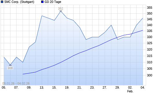 Mit dem Anstieg auf 342,00 EUR hat die SMC-Aktie am 03.02.2026 die 20-Tage-Linie nach oben gekreuzt.Die SMC-Aktie befindet sich seit dem 05.01.2026 im langfristigen Aufwärtstrend und hat in ...weiterlesen