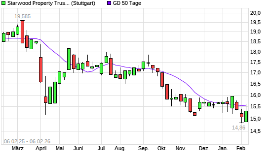 Mit dem Rücksetzer auf 15,40 EUR hat die STARWOOD PROPERTY TRUST-Aktie am 05.02.2026 die 50-Tage-Linie nach unten gekreuzt.Die STARWOOD PROPERTY TRUST-Aktie befindet sich seit dem 28.03.2025 ...weiterlesen