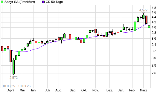 Mit dem Rücksetzer auf 4,08 EUR hat die Sacyr Vallehermoso S.A. Acciones Port.-Aktie am 09.03.2026 die 50-Tage-Linie nach unten gekreuzt.Die Sacyr Vallehermoso S.A. ...weiterlesen